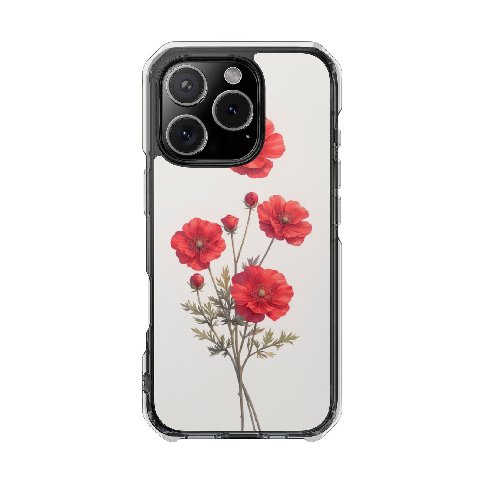 This iPhone Tough Case features a stunning design of red flowers, perfect for adding a pop of color and elegance to your smartphone. With MagSafe compatibility, it allows for seamless use with MagSafe accessories. This case provides durable protection with air-cushioned bumper corners, making it a stylish and functional addition to your daily life. Ideal for individuals looking to showcase their unique style while keeping their phone safe and secure.